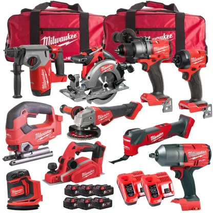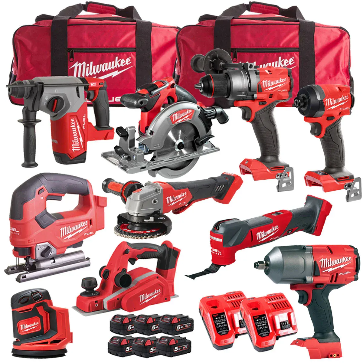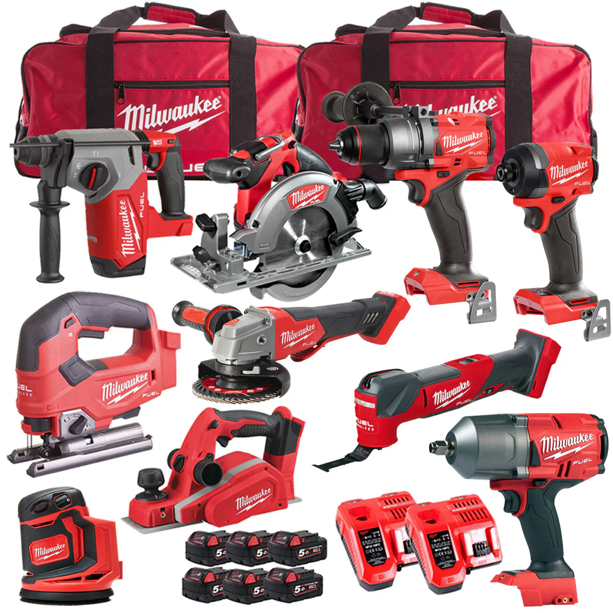 Milwaukee 18V Cordless 10 Piece Tool Kit with 6 x 5.0Ah Batteries & Charger in Bag T4TKIT-510